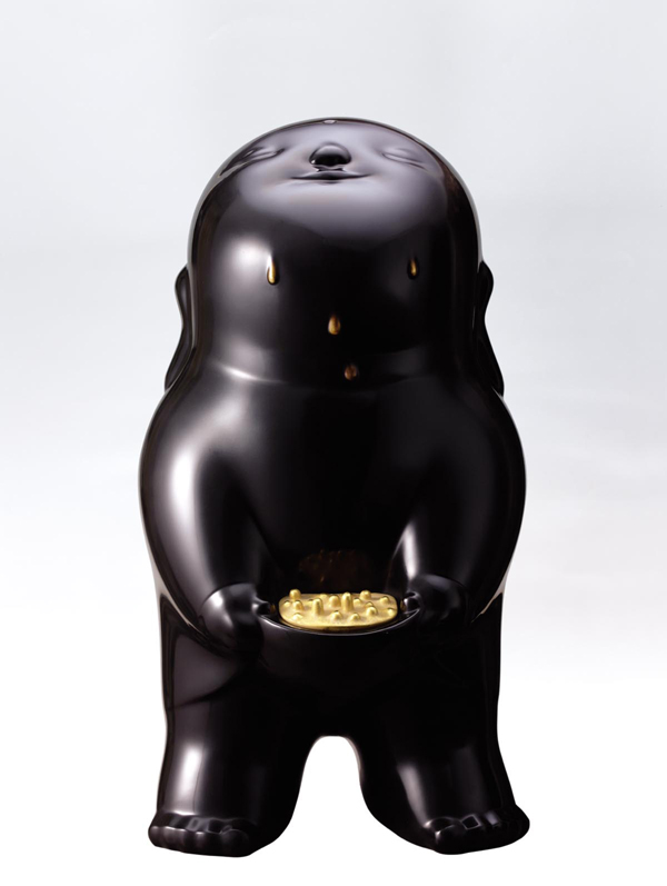 完成於2005年,李真藉景抒懷,雨後時分、夕陽落下地平線前的閃閃餘暉,夕陽將雨水映照成金黃色,孩童在雨中暢快淋漓的淋雨,將自身與大自然融合為一,好不自在快活,李真將此情此景具體化為實體雕塑作品。從正面細看,有三滴雨滴落在臉部與頸間,彷彿是孩童的眼與鼻,李真在此放大了直觀的感受,呈現出作品中的獨特的幽默感與虛幻清淨之氣質,帶給觀賞者不同的視覺感受。金,也代表價值,用黃金來隱喻雨水,描述的是用心感受生命源頭的喜悅。那「日落萬點金」的氛圍,金的溫潤、黑的能量,既對比又和諧,衍生無限的想像空間,營造出空靈而華美的氛圍,更有一種溫暖能量,表現物質維持的價值,展現無窮的生命力。