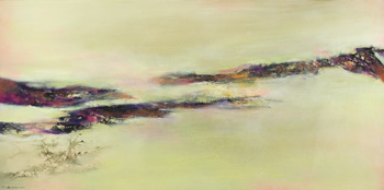 and Western traditions. Undoubtedly, it was his Chinese heritage that led him to reconcile oil painting with the influence of traditional ink painting. He had experimented with colours by mixing his paint with large quantities of turpentine in attempts to make it flow like Chinese ink on the canvas. More specifically, Zao admired the serenity of Cimabue’s Maesta and contemplated on how the golden halos created a perspective that is reminiscent of ancient Chinese landscapes where planes were often separated by curtains of mist. The artist build on these conceptions and continued his explorations on the fluidity of ink and the flexibility of the wrist movement through the utilization of a large, flat brush that permitted the application of a thicker, more fluid coat of paint all come together in the end as a fruitful whole, as epitomizes by the present lot Mars - 3 Avril 2003. It is apparent that the lines flow with the artist’s thoughts, from both sides of the canvas spun brushstrokes that cut horizontally in the middle of the painting, cohesively interpenetrating but without ever blending. The lines are broken yet continuing as it expresses the impulsive dynamics and leads the audience into the dedicate changes in colors in the form of an iridescent mist that is hardly visible yet momentarily perceptible. This quality is akin to the rhythm and expressiveness the free brush xieyi style of the Ming artists. The composition revolves between real colors and abstract shapes that is reminiscence of an ethereal sense of Zen and surrealism, which owes its origins to Zao’s adaptation of Shitao’s theories on painting that is ever so endearing to the heart of traditional Chinese ink painting, which posits “One must work with ease of movement, the hand held high, and the brush-stroke will be capable of brusque metamorphoses. When the wrist is guided by the soul, rivers and mountains surrender their souls.”