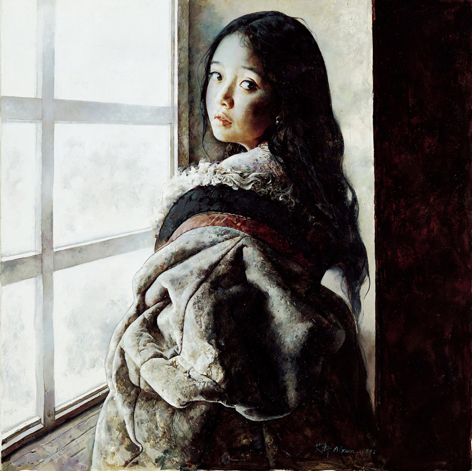 在這樣的精神氛圍裡,畫家將他擅長的神秘而孤寂的形象,透過生動細膩的寫實語言,獲得了創造性的體現。在此過程中,畫家又將寫實手法提煉到洗煉和精緻的境地,收放自如,虛實相合,強調油畫語言表現力的魅力,輪廓線的劃分。用外輪廓的效果,質地和色調的變化,營造繪畫語言的美感。艾軒從還原真實的體驗出發,發揮生活的積累,賦予理性的秩序,形成作品的含蓄之美,把觀眾帶進有悠遠、沈靜而神秘的藝術氣氛之中,以意念的發揮和形象的象徵,有如弦上之箭,引而不發。
