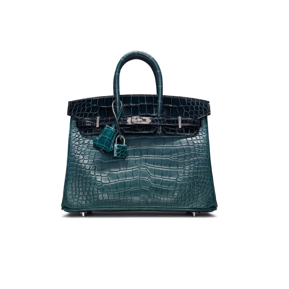 A MATTE & SHINY VERT ROUSSEAU & VERT BOSPHORE ALLIGATOR BIRKIN 25 WITH PALLADIUM HARDWARE