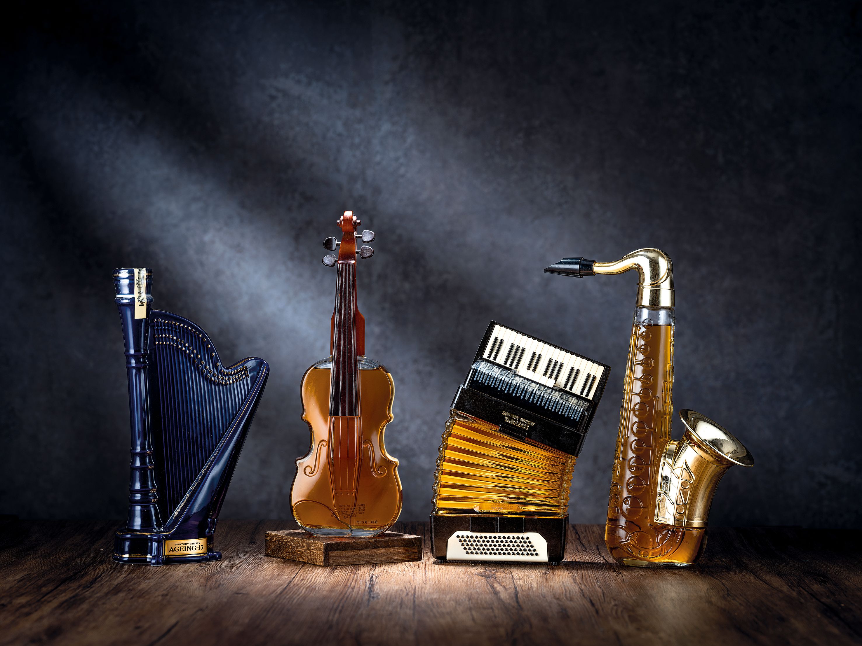 Suntory Whisky Ageing 15 Years Old 藍色豎琴/Suntory Royal Whisky Violin/山崎蒸溜所 Yamazaki 12年 Accordion/山崎蒸溜所 Yamazaki 12年 Saxophone