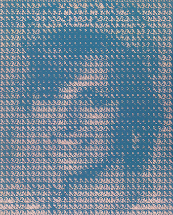 金東囿單色的肖像繪畫以別出心裁的符號性手法,重新詮釋大眾消費文化中的名流人物,樹立藝術家獨特而令人印象深刻的標誌性風格。《黛安娜 VS 伊莉莎白》遠觀是黛安娜王妃與查爾斯王子結婚時滿溢笑容的單色肖像,她頭戴尊貴冠冕、身著華美婚紗, 經由大眾傳播媒體,這風采迷人、幸福美滿的一刻曾經播送並風靡全世界,令人不禁想起她往後迭宕傳奇的一生。近距離觀賞此作時,王妃美麗的形像消融為無數的伊莉莎白二世女王肖像,金東囿以精湛的繪畫技巧與精準的色階安排,一方面繪出眾多迷你女王肖像,同時由這些小形肖像巧妙地組成一個大形的王妃像,在聚散游移的視覺焦點變換中,提點兩人之間錯綜複雜的關係。《黛安娜 VS 伊莉莎白》亦指出大眾媒體時代中名人肖像大量複製與追星的狂熱,名人引領了眾人的目光,吸引媒體的追逐,而令人豔羨的皇室風采避免不了悲歡離合,亦承受著社會大眾的消費。