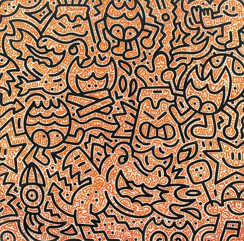 英國鬼才藝術家 Mr Doodle 憑藉 一隻麥克筆,以密鋪式的簡單線 條塗鴉風靡全球。九歲開始其藝 術生涯,有著鮮明的個人風格, Mr Doodle 充滿英式嬉皮及幽默 也令他坐擁無數粉絲。若現場觀看 藝術家的即興創作,必定會對他 從來流暢地一筆畫而感到驚奇。 Mr Doodle 以當代流行元素或是 日常生活經驗為靈感,在他的塗鴉 世界中千奇百怪的人物與符號、個個獨一無二,亦滿足了觀者的異想,為 Mr Doodle 的塗鴉 世界中編織出生動幻想與故事,在想像中感受藝術家所帶來 的樂趣。他形容自己的作品為「強迫性塗鴉」唯一解藥就是盡情創作, 靠著對塗鴉如同強迫症一般的熱愛,對任何可以拿到的物體都 做塗鴉,並用塗鴉紙貼滿了他的臥室。他很快地創造了一種全 新的視覺現象:標誌性的「Doodle Land」(塗鴉樂),密集 的符號、物體和圖案不斷地增長和繁殖,展現出了他的宇宙觀。 他的風格經常被形容成是「塗鴉義大利麵」,他的創作不僅入 侵了畫布,還入侵了家具、書、地鐵站和服飾等,並創造了一 個不斷擴展的世界,裡面充滿了各種新奇好玩的事物。2018 年,他在首爾 Ara Art Center 舉辦了「Doodle World」大型個 展,其後並跨界與三星、PUMA、Fendi 等品牌聯名合作,成 為近年紅遍全球、炙手可熱的新一代藝術家。
