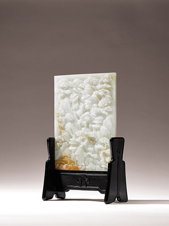 A GREENISH-WHITE JADE LANDSCAPE TABLE SCREEN Qing Dynasty, Qianlong Period (1736-1795)