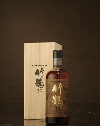 竹鶴35年是Nikka集團最老年份的一款調和式威士忌,使用35年以上的原酒進行調合。在余市與宮城峽年份酒款皆已停產的此時,每年僅生產1200瓶的竹鶴35年更顯彌足珍貴。