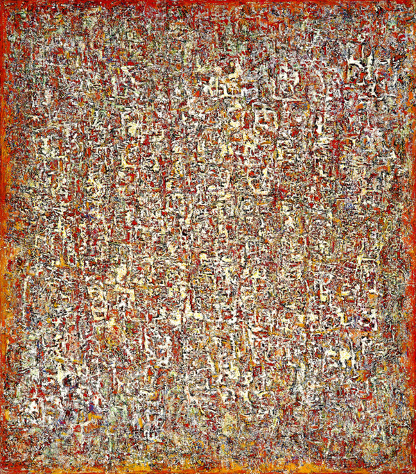綜觀陳蔭羆的抽象畫發展,依年代分為幾個階段,首先是1950年代的黑白系列抽象作品,漢文字、碑帖入畫,而後漸融入色彩;1960年代文字符號仍在,佐以破碎、揉合、拼貼、糊裱等材質變化,表現肌理厚實,透露出人文湮滅的神祕痕跡;1970年代之後發展出另一種色彩繽紛、線條奔放如織錦般的抽象圖畫,融入都會景觀的現代感受,洋溢著古文明與現代的華麗融合,藉由行動繪畫的滴流、潑灑方式盡情展現。