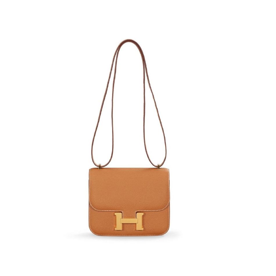 駝色EPSOM牛皮18公分迷你CONSTANCE包附金色金屬配件