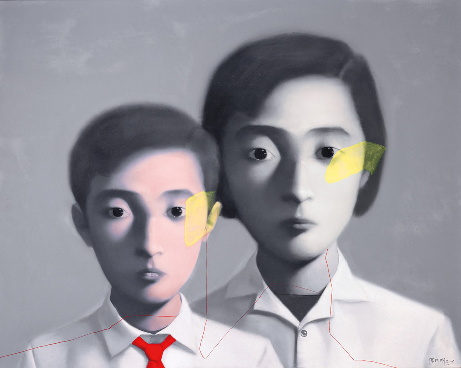 關於這個作品的來源,張曉剛1995年在〈自述〉一文中大所闡釋:「構成近期作品的因素,除了歷史和現實所賦予我們的複雜心理外,直接的靈感來源出自私人家藏的舊照片,以及中國大街上隨處可見的『炭精素描畫像』。我無法說清楚那些經過精心修飾後的舊照片究竟觸動了自己心靈深處的哪一根神經,它們使我浮想聯翩,愛不釋手。也許正因為處在今天的時代中這些舊照片已不僅僅給人某種懷舊心理的滿足感,也許它們所呈現出的某種單純直接而又充滿了某種虛幻的視覺語言方式,驗證了我對高深莫測的樣式主義以及虛誇的浪漫主義的厭棄心理?同時,舊照片和炭精像一類的圖式語言,體現出我非常熟悉而又曾經不屑一顧的東西,其中也包含著中國普通人長期以來所特有的某種審美追求,比如模糊個性而強調共性,含蓄,中性而又充滿詩意的審美特性等等。」在呂澎看來,「張曉剛的家庭背景是五十年代出生的人熟悉的『革命幹部』,這類家庭不同程度地保留著早年革命與建設的舊照片。這些照片完全不同於更早之前的那些可以看到長袍馬褂的舊影像—過分的古老與久遠,相反,從四十年代開始保留直至七十年代初期之間的老照片與活著的中國人—父母與子女—有著直接的情感與歷史淵源,他們甚至共同度過了那些重要的歷史時期。」(參閱《張曉剛:失憶與記憶》,阿特塞帝畫廊,首爾,頁34)