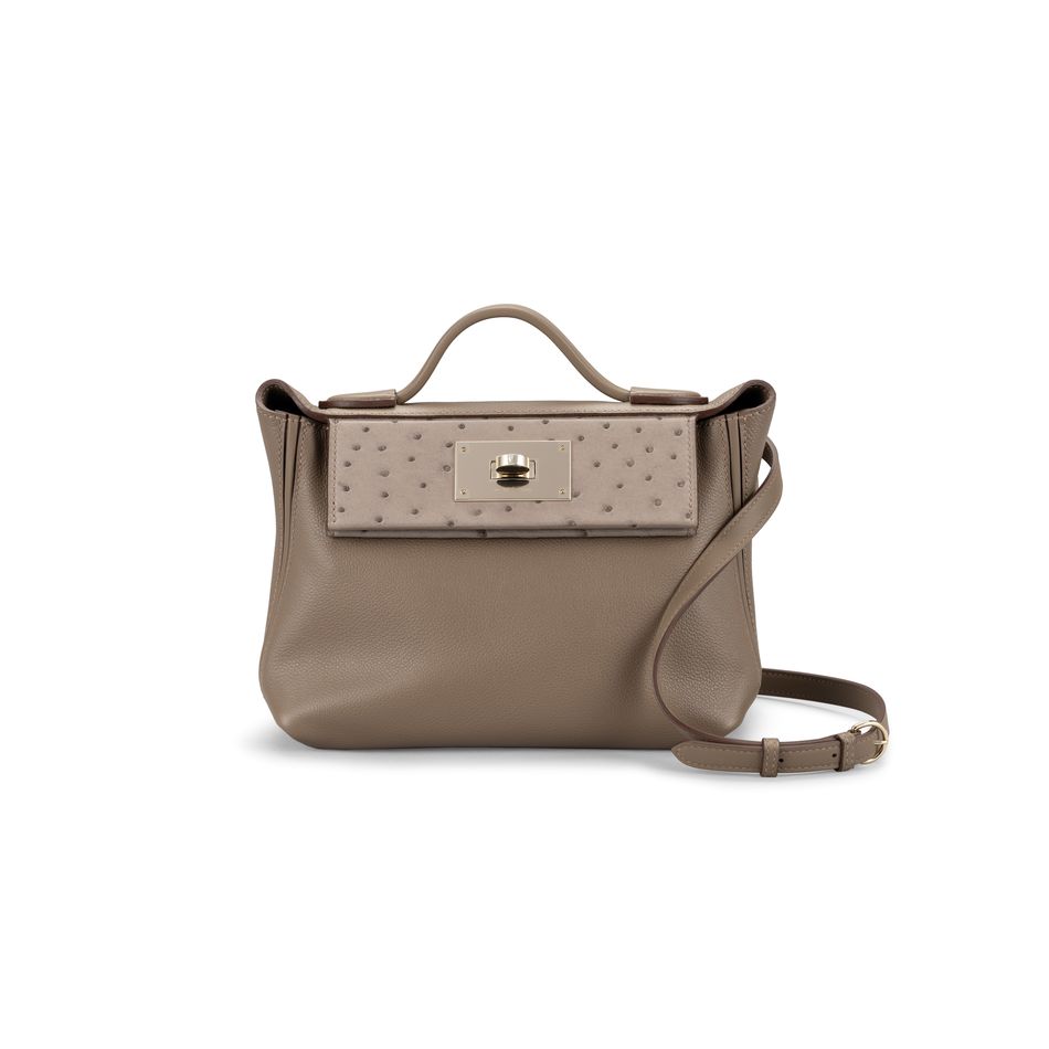 斑鳩灰色OSTRICH鴕鳥皮, 大象灰色EVERCOLOR及SWIFT牛皮21公分迷你24-24包附淡金色金屬配件