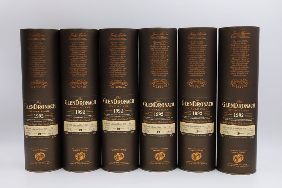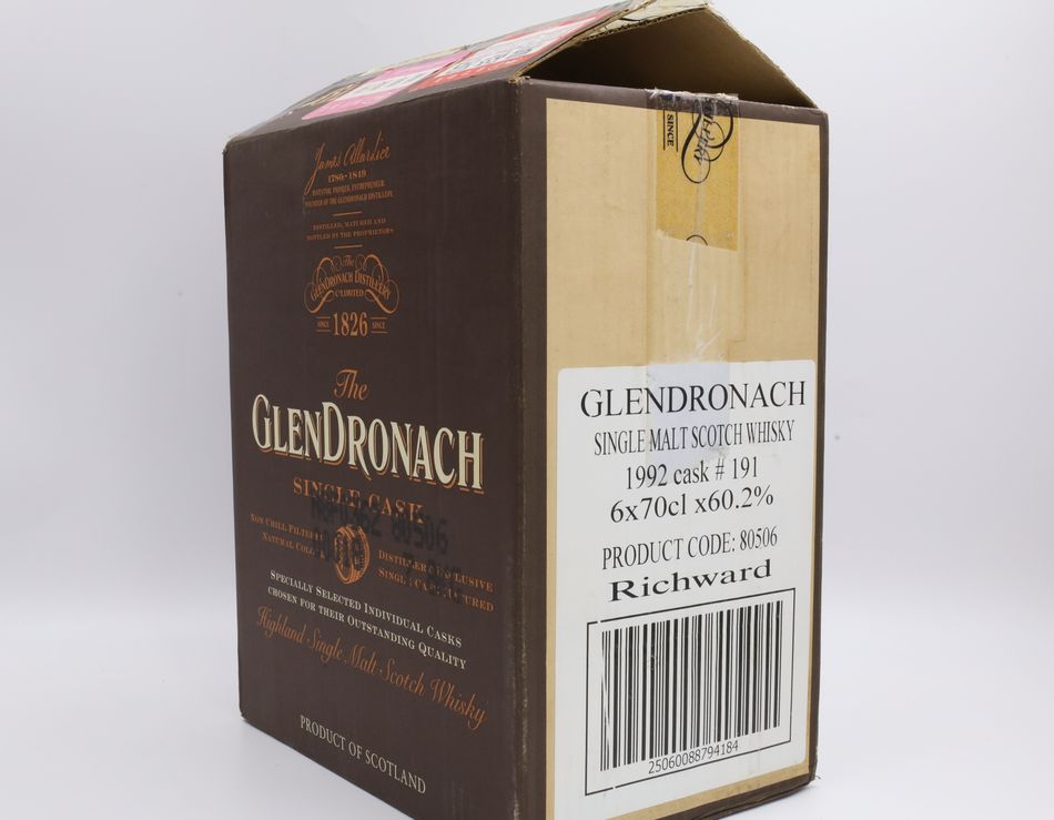 Cask#191, Bottle#216&218&219&220&235&237, 限量373瓶, Oloroso Sherry Butt, 1水位頸部, 2水位頸部以下, Bottle#218的圓筒為#217, 附六瓶原裝箱