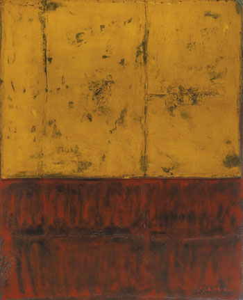 此幅拍品《黃庭堅》作品創作於2009年,以中國宋朝大詩人、書法家為題,中黃、大紅的色彩帶有中國的底蘊。它是一幅結構俐落的抽象畫,畫家所講究的是畫面本身,儘可能採減法的方式,找到最原初的造型,既是最簡單抑是最邊緣的,但卻能顯露大器不凡的風範。
