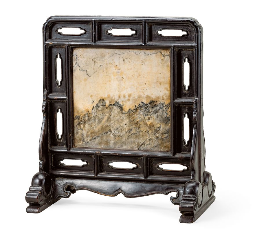 清 黑漆嵌雲石座屏