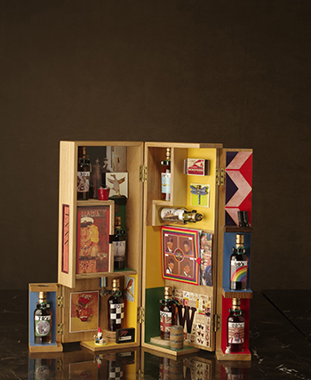 Sir Peter Blake是英國普普藝術教父,擅長以流行文化為核心進行創作,並以炫彩的撞色風格而聞名。為了慶祝這位傳奇藝術大師的八十歲大壽,Macallan特別與Peter Blake合作打造了這套匠心獨運、全球限量僅250套的作品。此紀念款的盒子共分為八個部份,八款威士忌—1937、1949、1952、1969、1976、1989、1997、2002-分別展現麥卡倫從20世紀到21世紀跨時代的歷史旅程;每一瓶威士忌的瓶身與背景為Sir Peter Blake的普普創作。