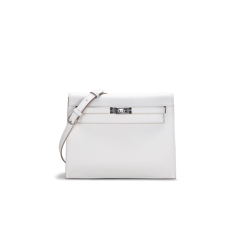奶灰色SWIFT牛皮KELLY DANSE包附銀色金屬配件