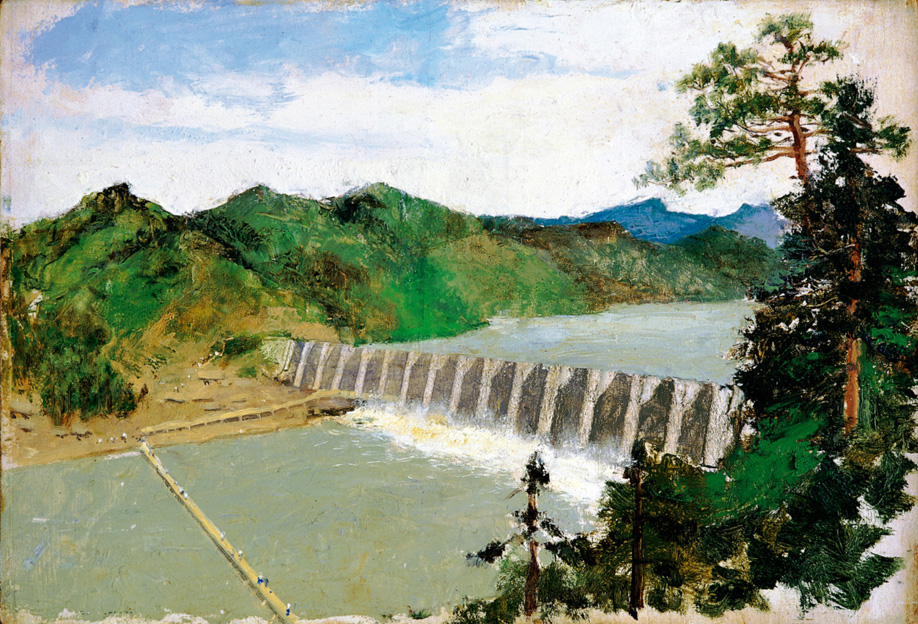 签名画背:佛子岭水库 吴作人 一九五四